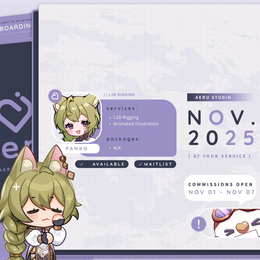 All commission requests will undergo a two-day screening process. Accepted clients will receive an email from admin@aeru.studio.